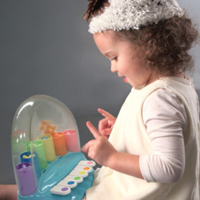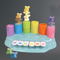 Musical play has been a favorite of children (and parents) for years. The satisfaction of the cause and effect of banging, shaking or tapping a toy and hearing the musical response is a delight for young children. Pop! Pop! Piano offers real musical play, but Mirari added a fun and unique feature that will surprise and delight children. When a key is pressed, the star in the coordinating tube will pop up and soar inside the arch. It's a colorful visual to go with the music. Parents can remove the clear dome to allow the shooting stars to bounce and land for children's added active fun of chasing them.